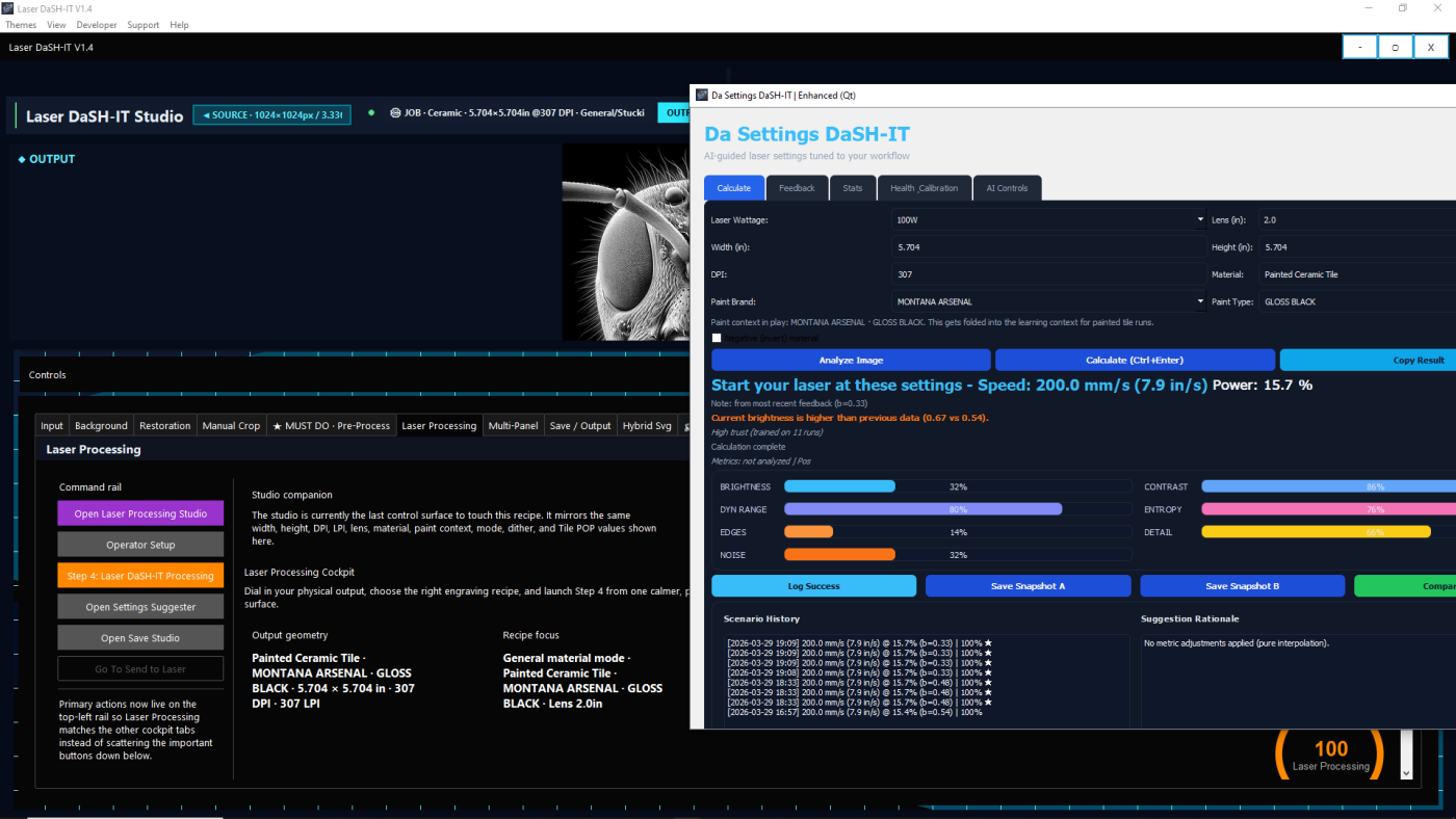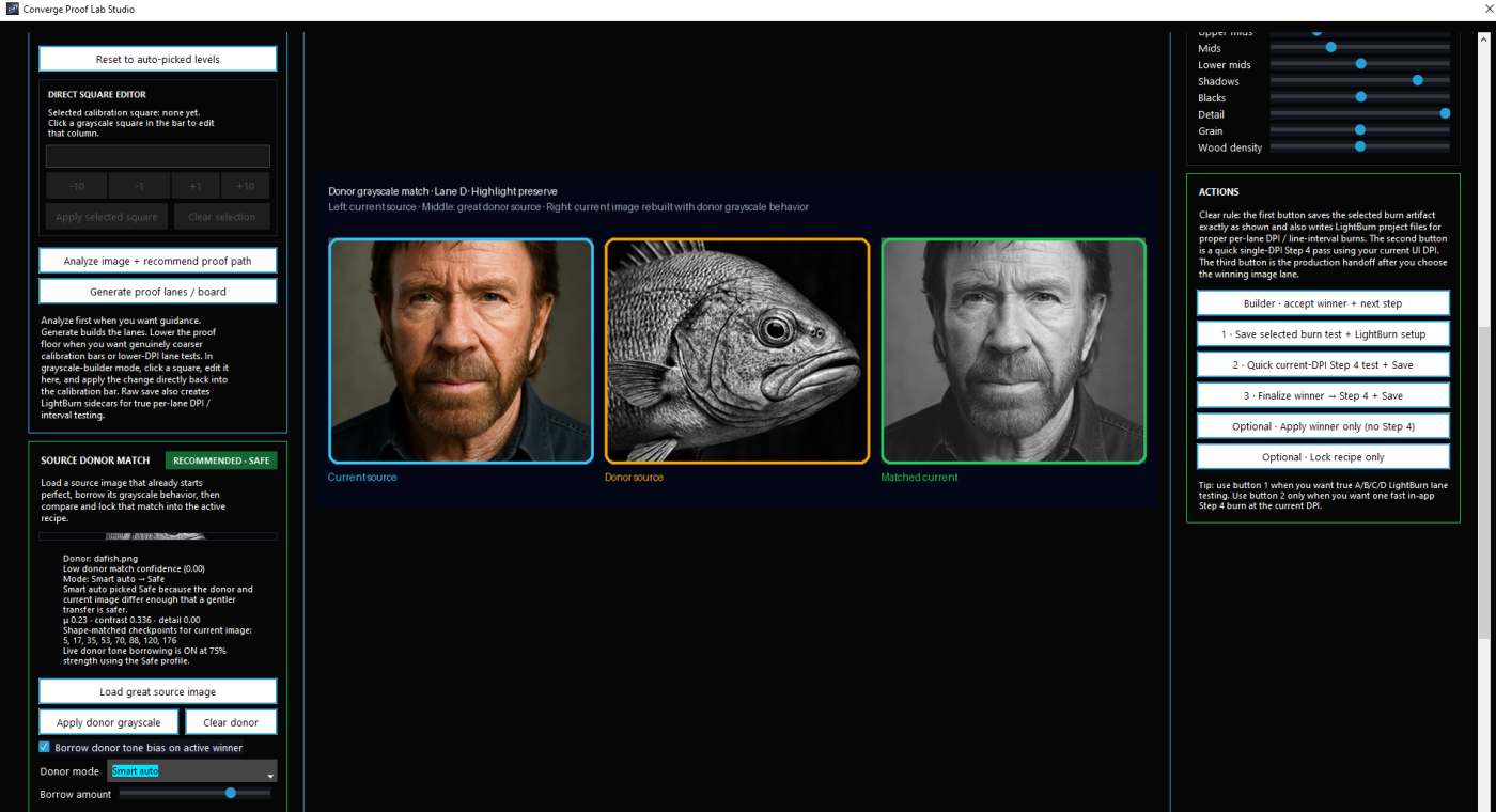 Prepare photos, use self-learning settings guidance, run donor-powered calibration proofs, plan multi-panel jobs, and export LightBurn-ready files with less guesswork and better production flow..